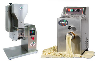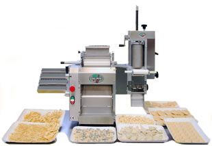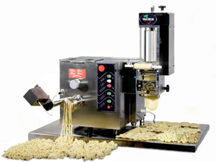 Kombinierte professionelle Nudelmaschine welche im Pressverfahren arbeitet. Solide Bauform, zuverlässig in der Produktion und einfach in der Bedienung. Die Herstellung von unterschiedlich langen Teigwaren und Formen wie Spiralen und Muscheln geschieht im Handumdrehen.